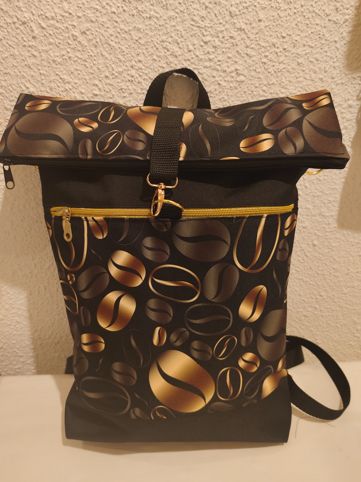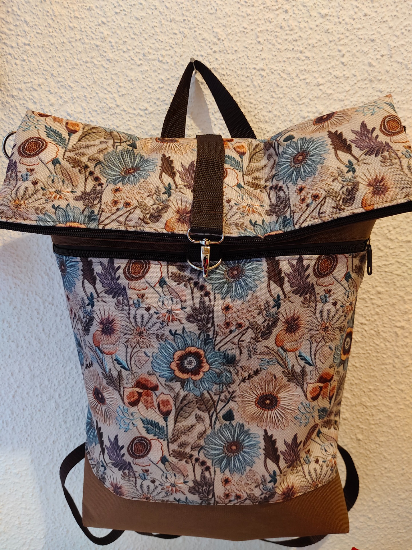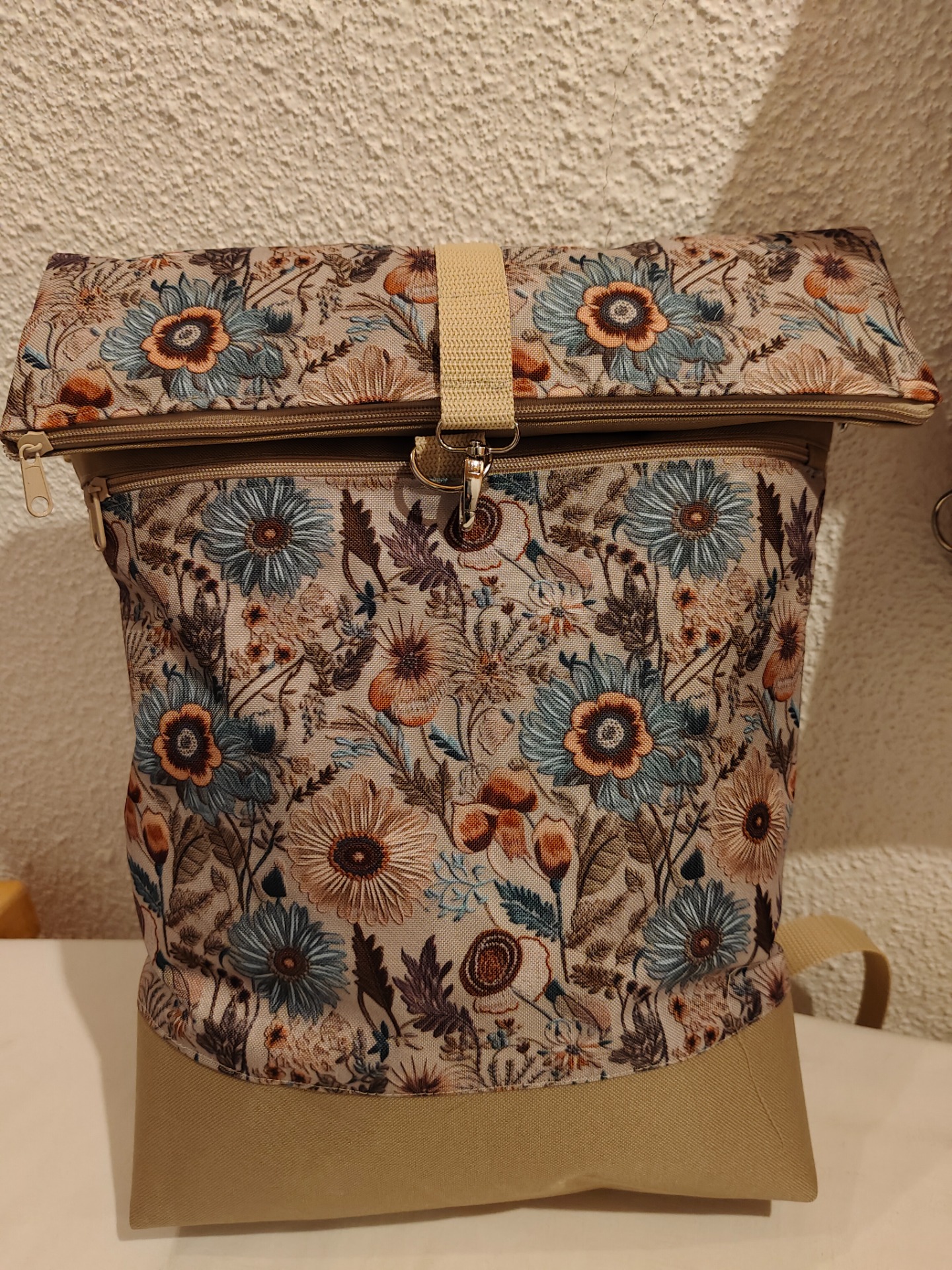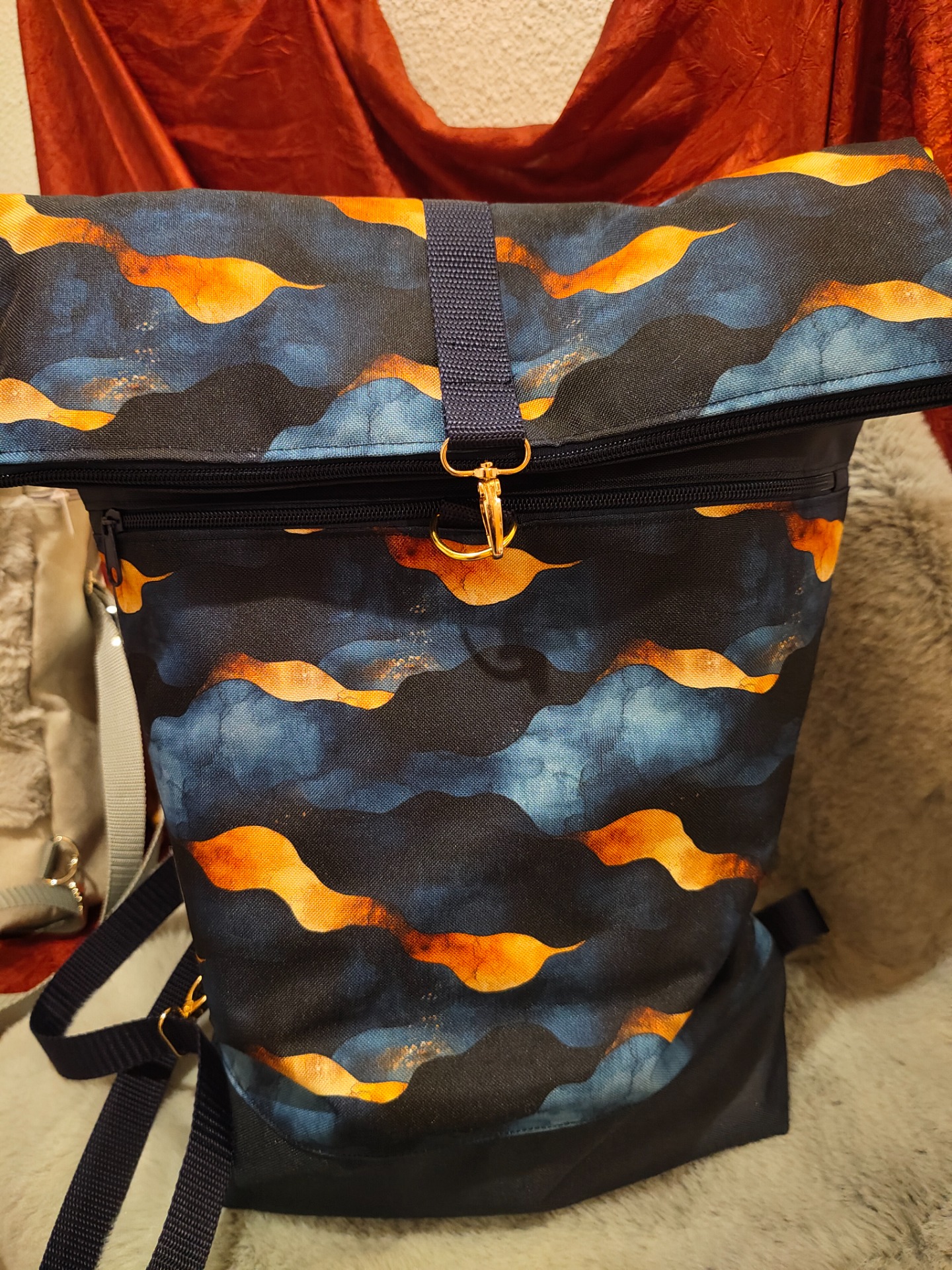 Rucksack/Tasche aus abwaschbarem Stoff Gr.:43/33, je einen Zipp vorne und hinten mit Fach!