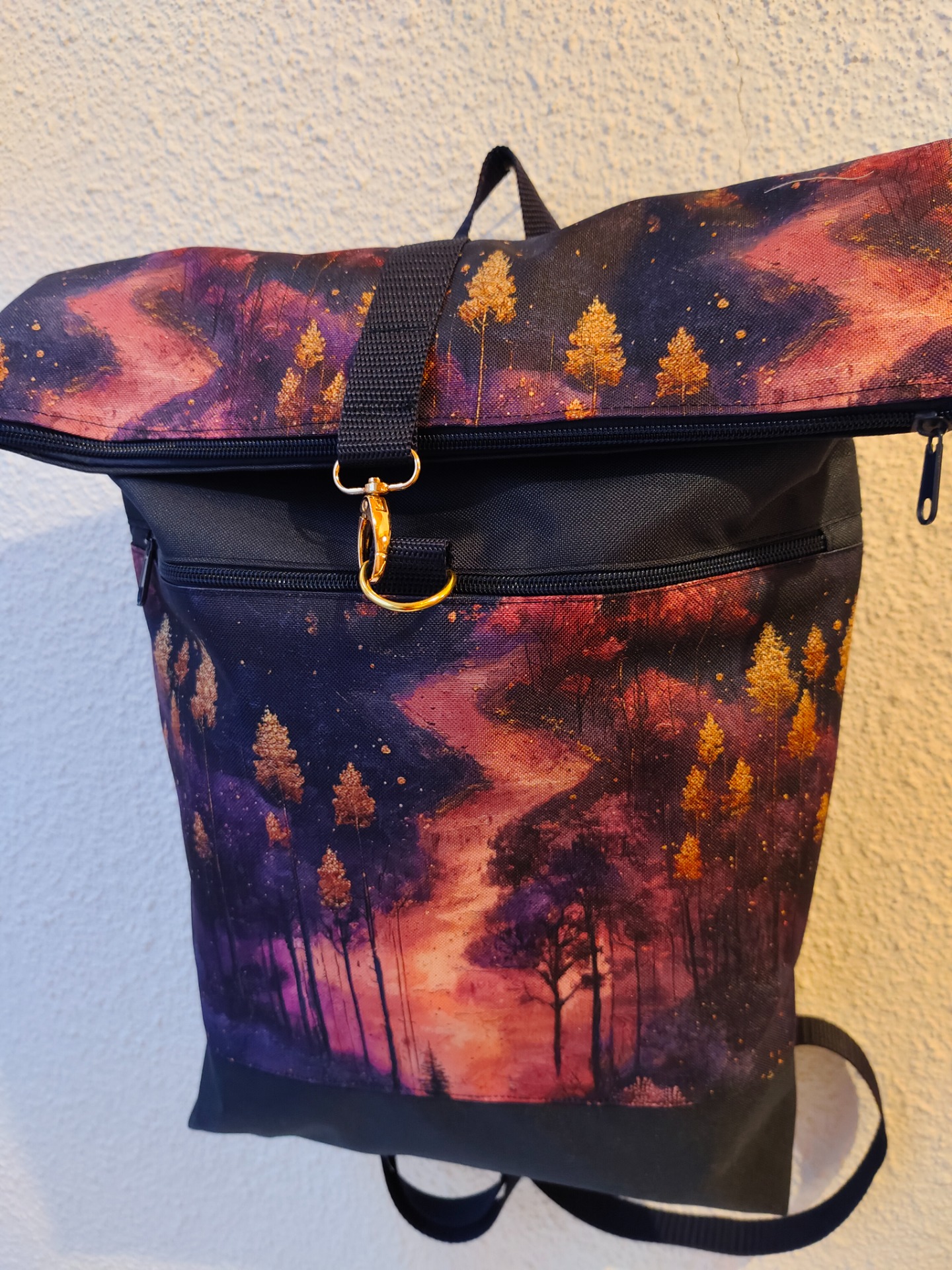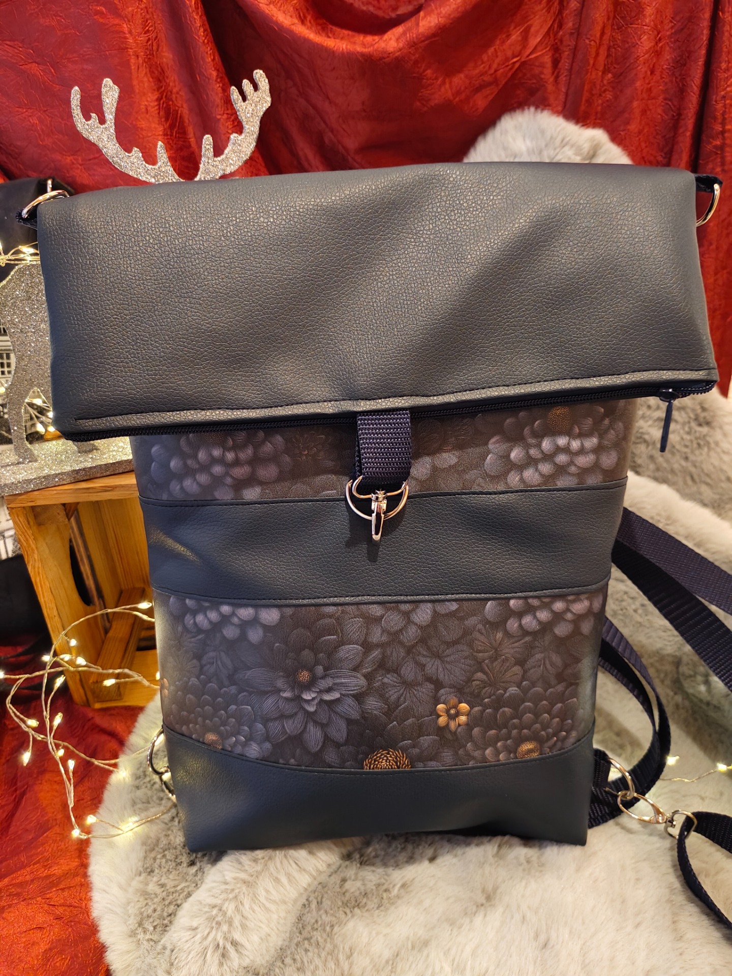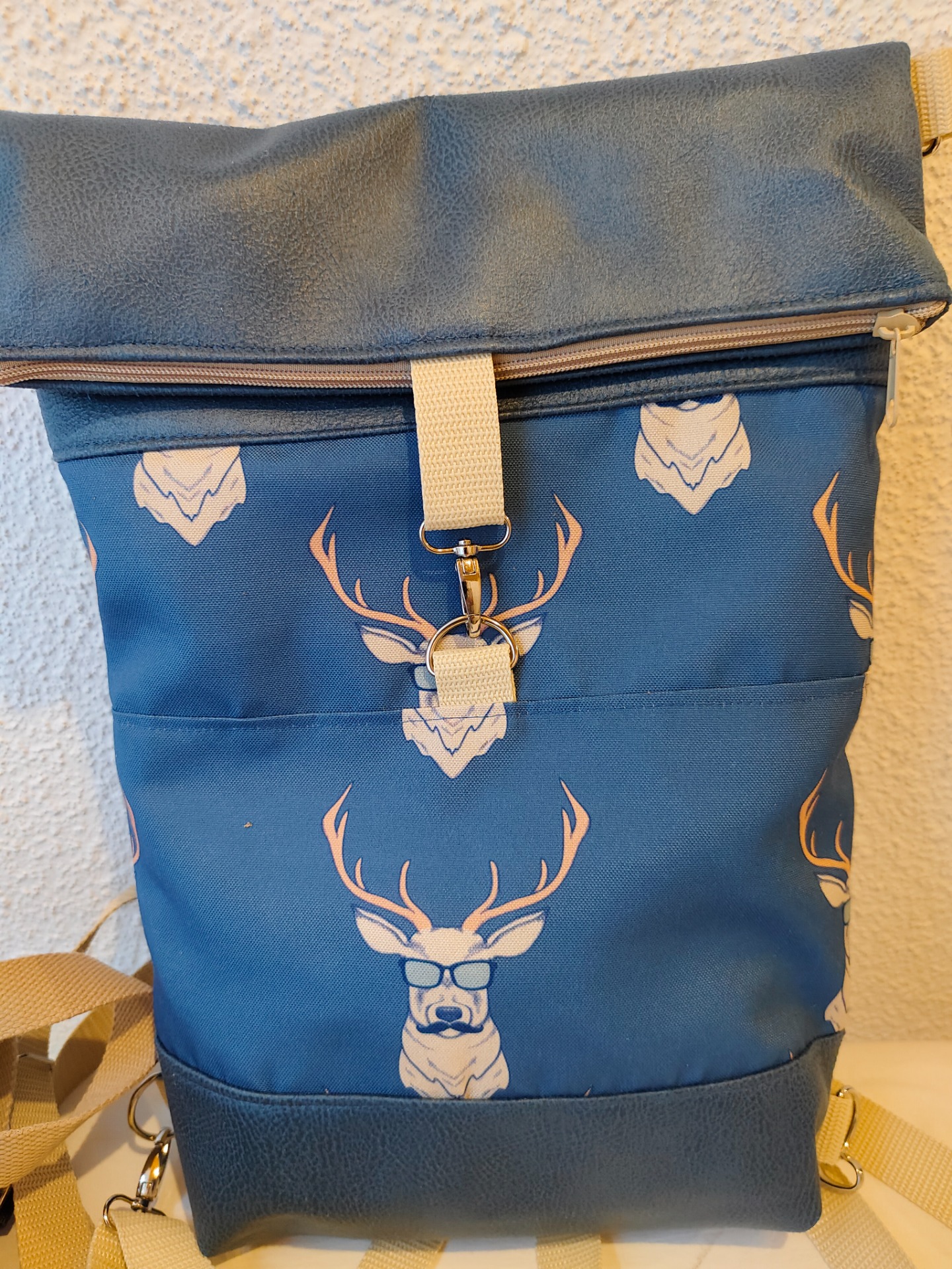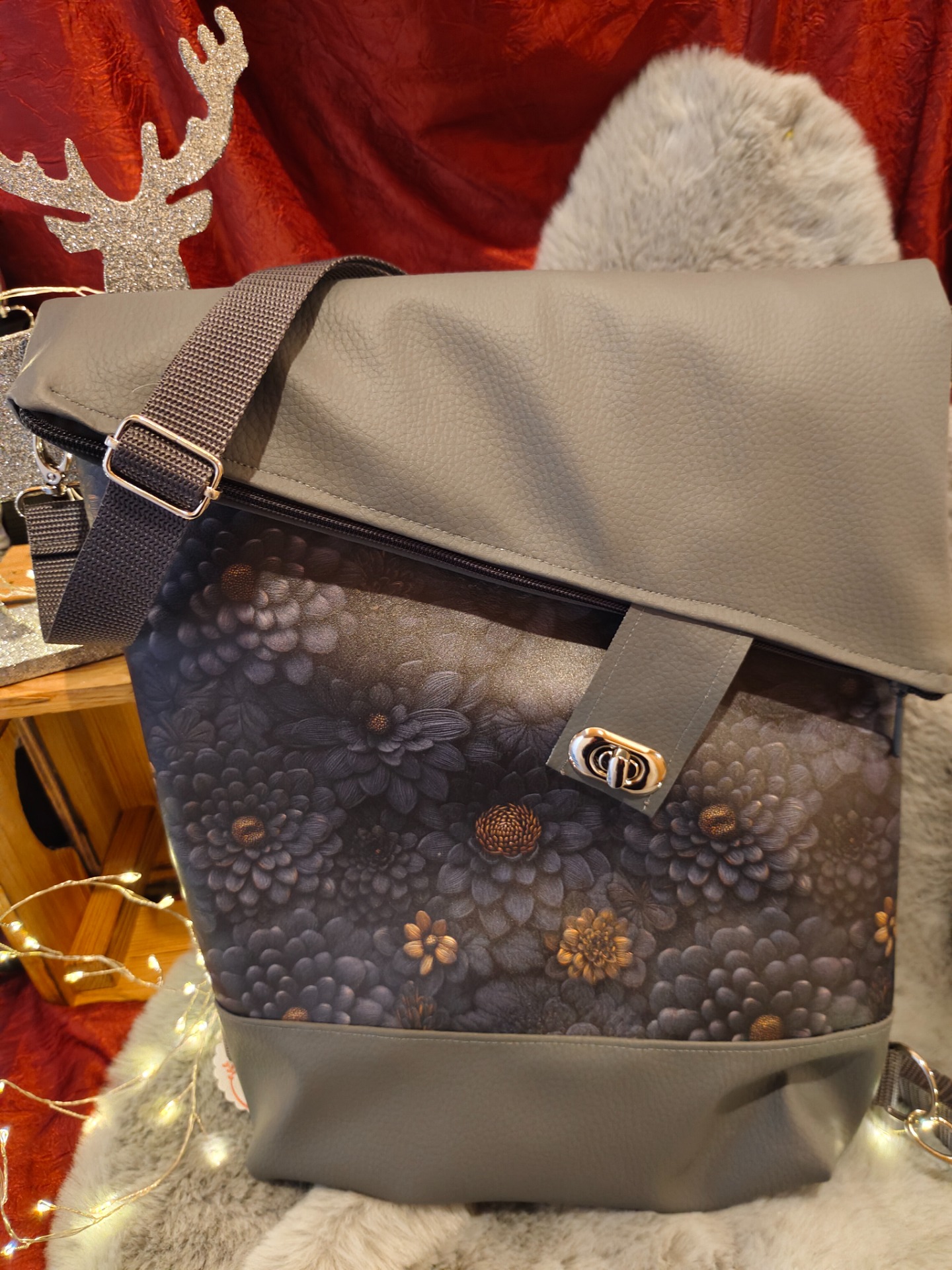Rucksack/Tasche aus abwaschbarem Stoff Gr.:43/33, je einen Zipp vorne und hinten mit Fach!