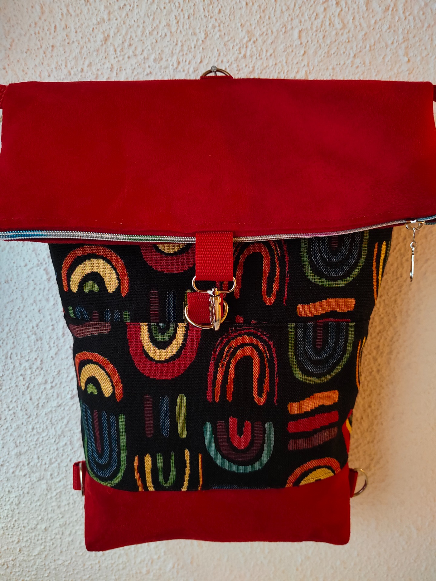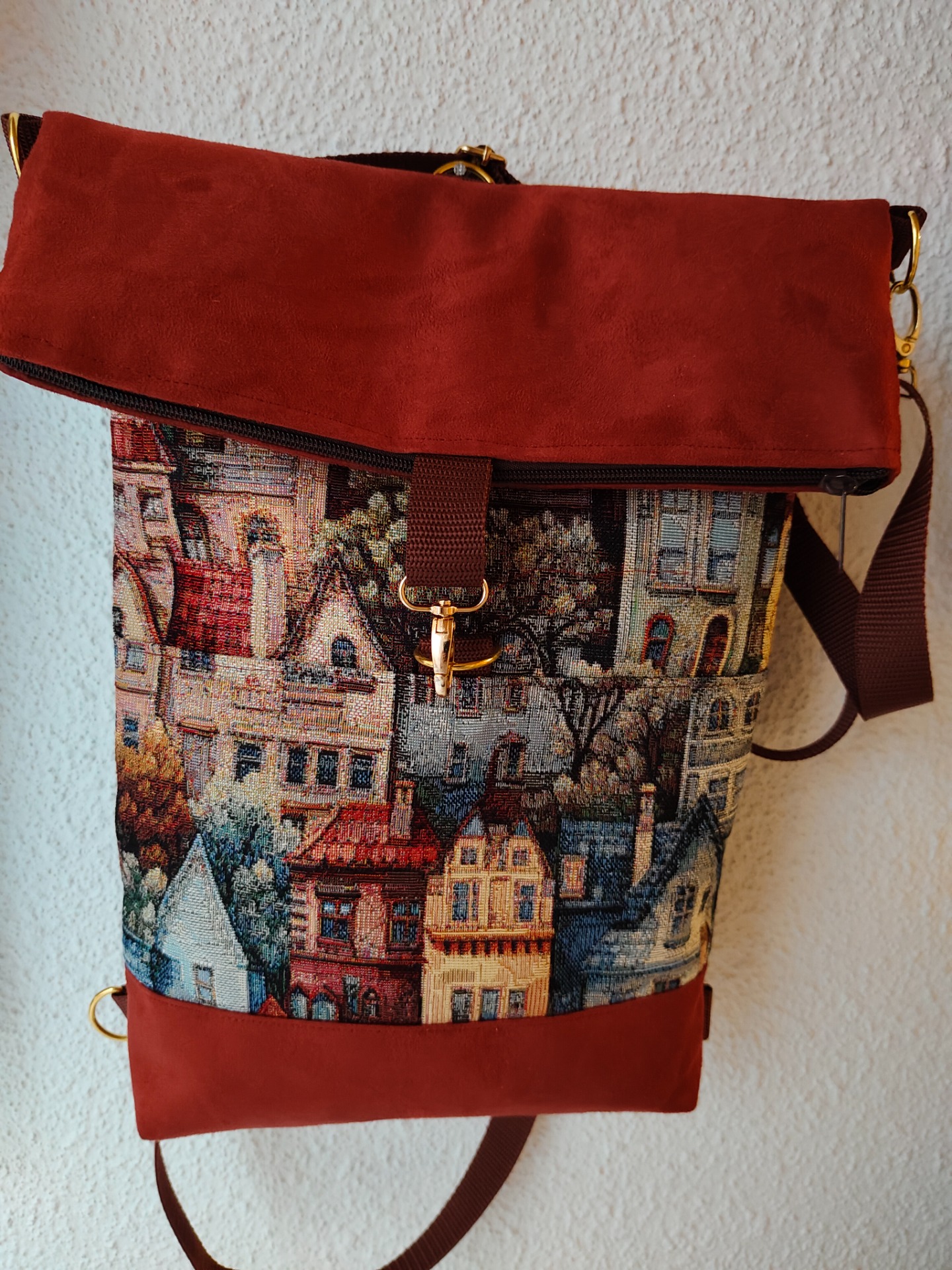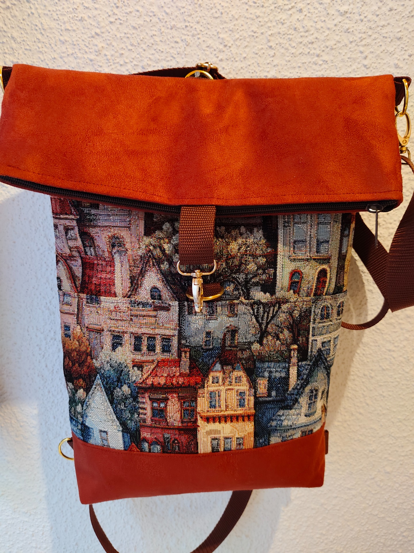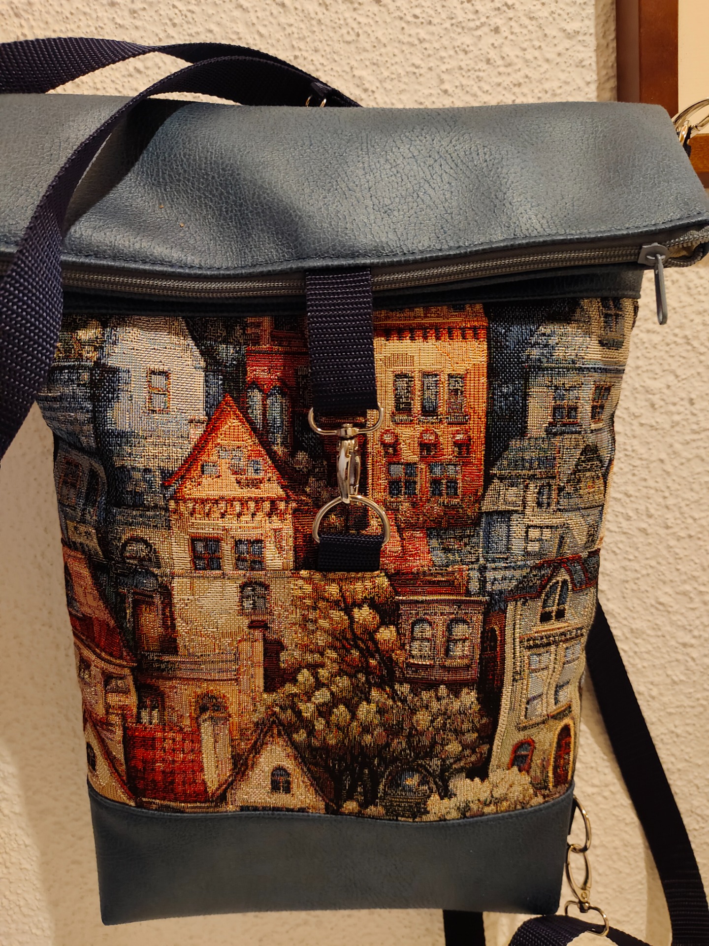 Rucksack und Tasche in einem! Durch umklicken der Träger wir die Tasche zu einem Rucksack. Jede Tasche ist mit wasserabweisendem, strapazierfähigem Stoff gefüttert. Rückseitig hat jede Tasche ein Eingriffsfach mit Zipp.